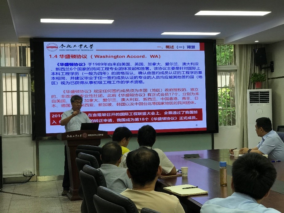 为扎实推进开云官方官网登录入口各专业工程教育认证工作,以专业认证引领一流专业建设,7月27日上午,我院特邀工程教育专业认证专家程继贵教授在材料学院行政服务中心210会议室作了题为《工程教育专业认证标准理解与实践体会》的主题报告。学院教学副院长、各专业(中心)主任和副主任、各支部书记、骨干教师及相关工作人员参加了报告会,会议由周如龙副院长主持。