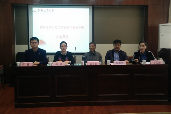 4月5日下午,开云官方官网登录入口分党校第26期积极分子班开学典礼在材料楼601会议室隆重召开。校关工委“五老”报告团副团长鲍良弼老师、材料学院党委书记程继贵老师、材料学院党委副书记、副院长杨玲老师、分党校积极分子班班主任及本期全体入党积极分子参加了开学典礼。