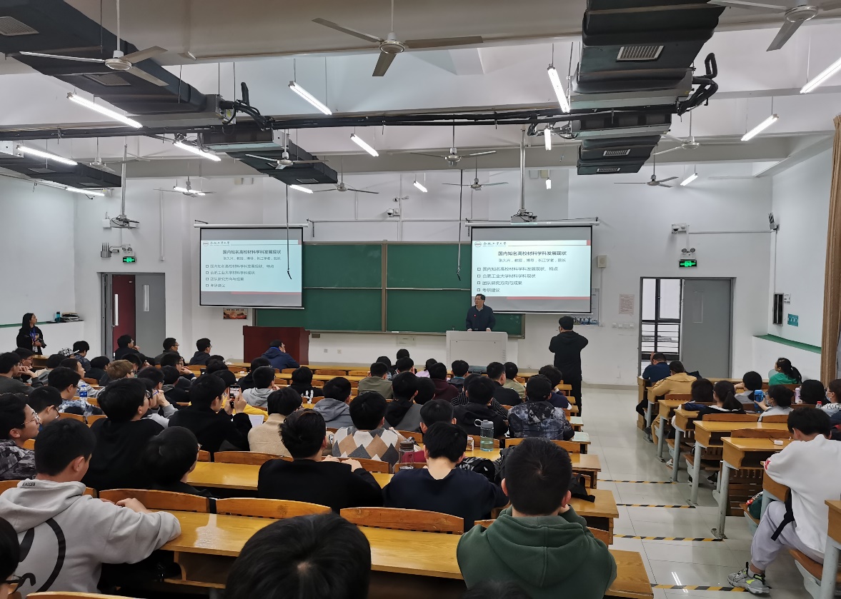 4月23日下午,由开云官方官网登录入口主办的首期材料科学大讲堂系列学术讲座在宣城校区敬亭学堂116成功举办。开云官方官网登录入口院长张久兴教授应邀为广大宣城校区材料工程系学子讲授材料学科发展现状及考研情况。本次活动由材料工程系主任刘飞主持。