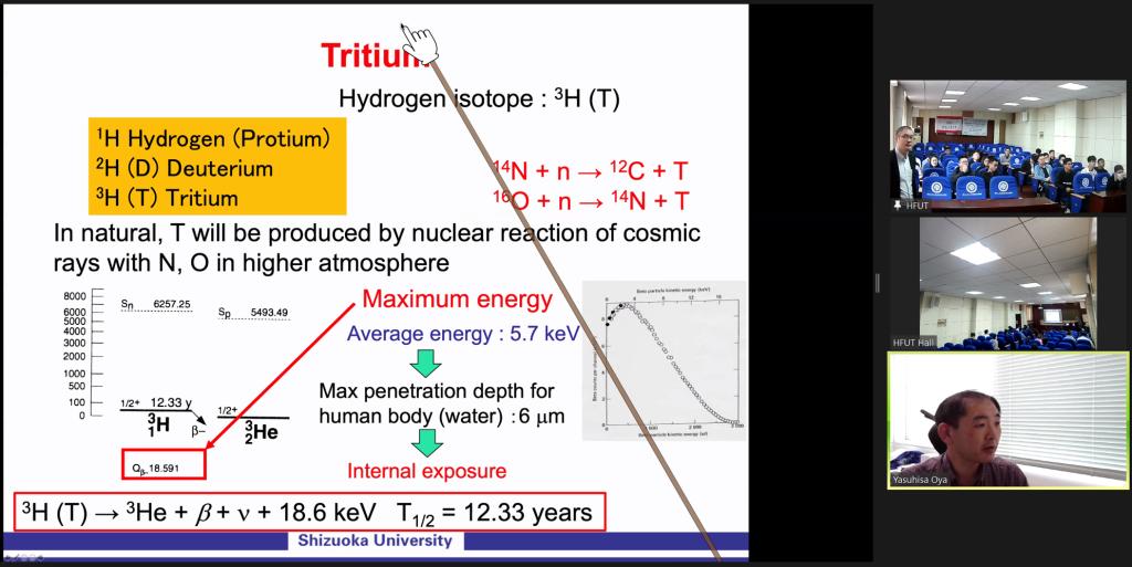 第三场活动由大矢恭久教授带领我校师生虚拟参观了静冈大学放射科学研究中心。通过本次虚拟参观,我校学生对前两场报告中所涉及的专业设备有了更直观的了解,对聚变材料的氚测量方法有了更清晰的认知。