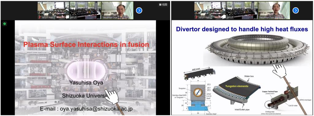 随后,我校师生通过视频虚拟参观了日本静冈市和静冈大学。静冈大学由五个学部组成,其中放射科学被日本文部省评为特色学科,特别是核聚变领域,该校围绕氢同位素行为的研究在国际上处于领先地位。
