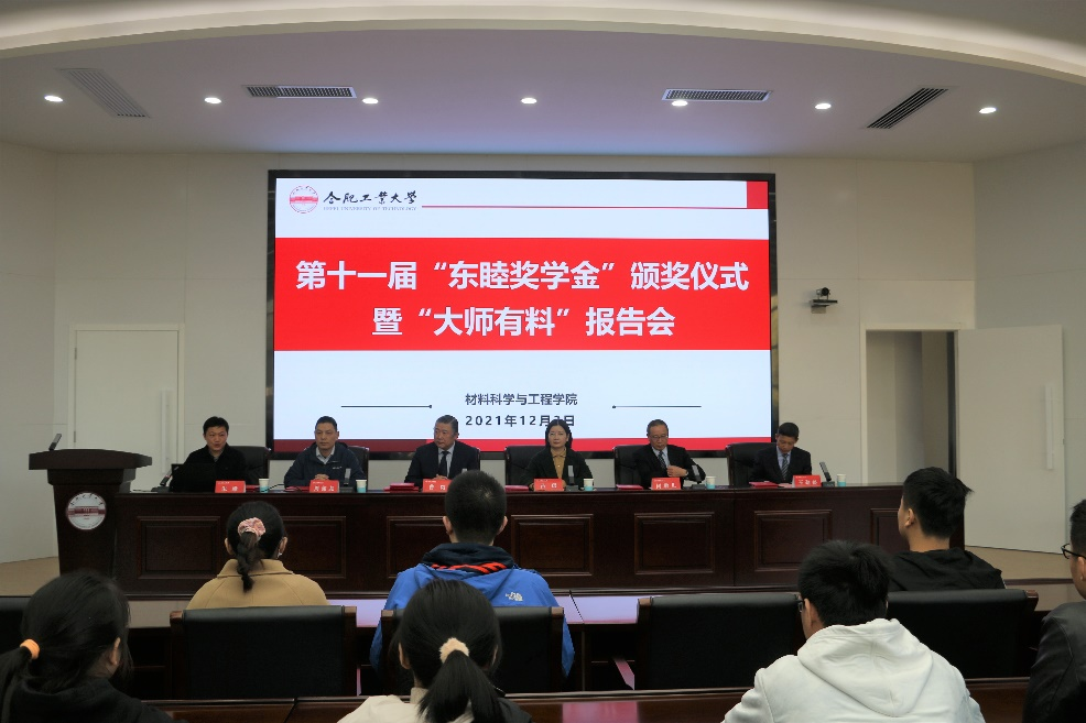 12月3日上午,第十一届“东睦奖学金”颁奖仪式暨“大师有料”报告会在学术会议中心三楼报告厅举行。东睦集团副总经理曹阳应邀作学术报告,材料学院领导班子相关人员出席仪式。