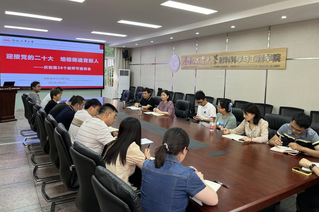 时值第38个教师节,材料学院围绕“迎接党的二十大,培根铸魂育新人”主题,开展了专题座谈会、专题学习、实践学习等庆祝教师节系列活动。