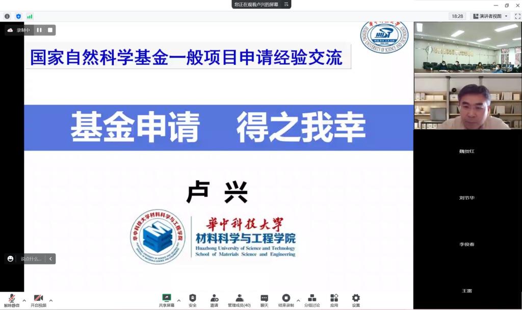 华中科技大学卢兴教授应邀作有关基金申报的讲座