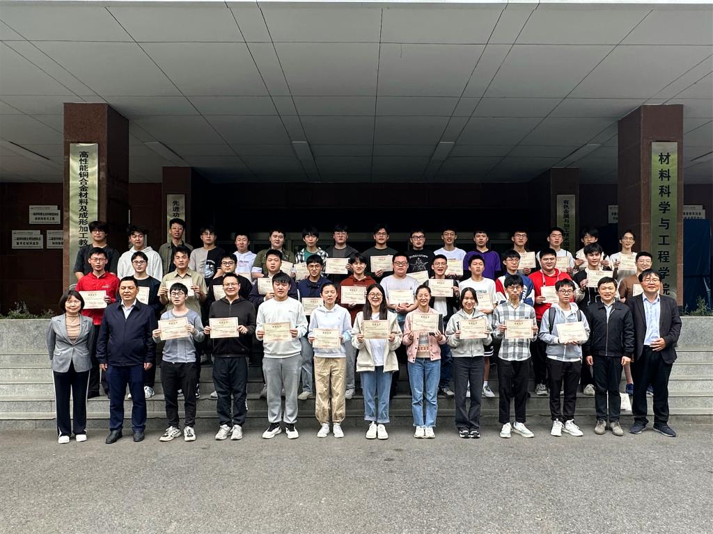 颁奖典礼于4月28日在材料楼举行,材料学院副院长周如龙、副书记兼纪委书记朱峰出席了颁奖典礼,并为获奖学生颁发了荣誉证书和奖品。颁奖典礼结束后,所有老师以及参赛同学于材料楼门口合影留念,本届金相技能大赛圆满结束。