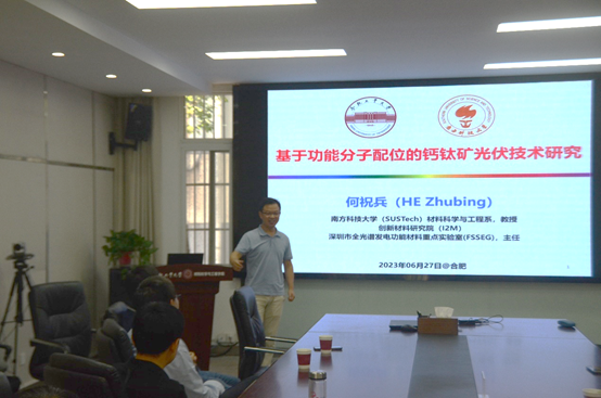 2023年6月27日下午,南方科技大学何祝兵教授应邀在材料学院210会议室为开云官方官网登录入口师生作了题为《基于功能分子配位的钙钛矿光伏技术研究》的专题讲座。报告由开云官方官网登录入口党委副书记朱峰主持,学院教职工和学生参加了报告会。