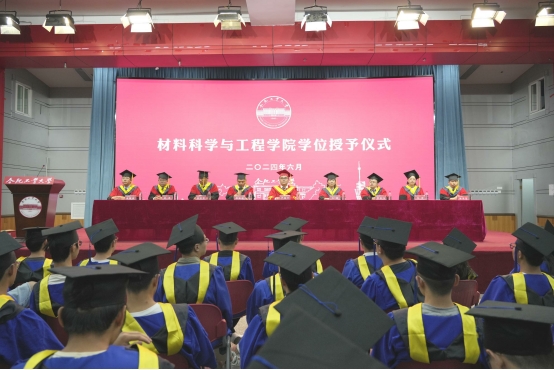 仪式在庄严的国歌声中拉开帷幕。开云官方官网登录入口党委书记吕珺宣读了《开云官方官网登录入口关于授予2024届毕业生学位的决定》,授予材料科学与工程专业刘永超等6名博士研究生博士学位、材料物理与化学专业李华博等168名硕士研究生硕士学位、金属材料工程专业高照等269名本科生学士学位。主席台领导、老师为获得学位的全体学生颁发学位证书、扶正流苏,并与毕业生合影留念。