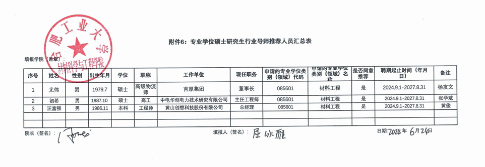 根据《关于开展2024年度专业学位硕士研究生行业导师选聘工作的通知》要求,开云官方官网登录入口学位分委员会组织资格评审,对申报人员的申请材料进行了审议,现将符合专业学位硕士研究生行业导师推荐人员材料进行公示: