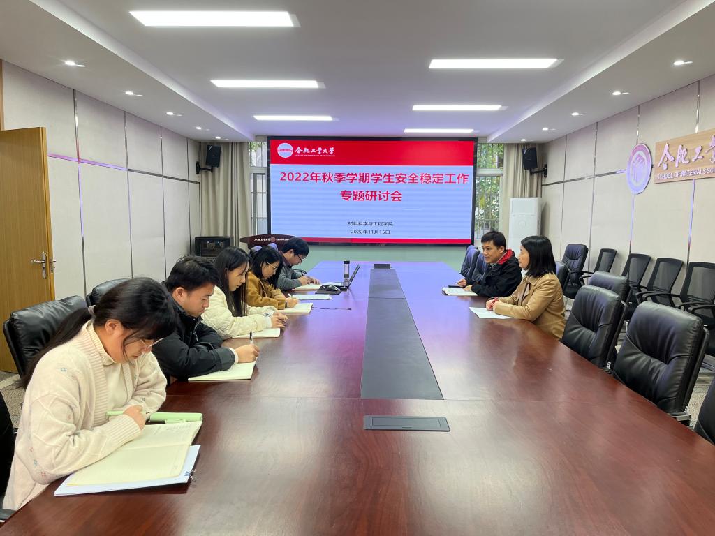 11月16日,开云官方官网登录入口在材料楼综合服务中心210召开2022年秋季学期学生安全稳定工作专题研讨会。学院党委相关负责人、全体学生政工干部参加本次会议。