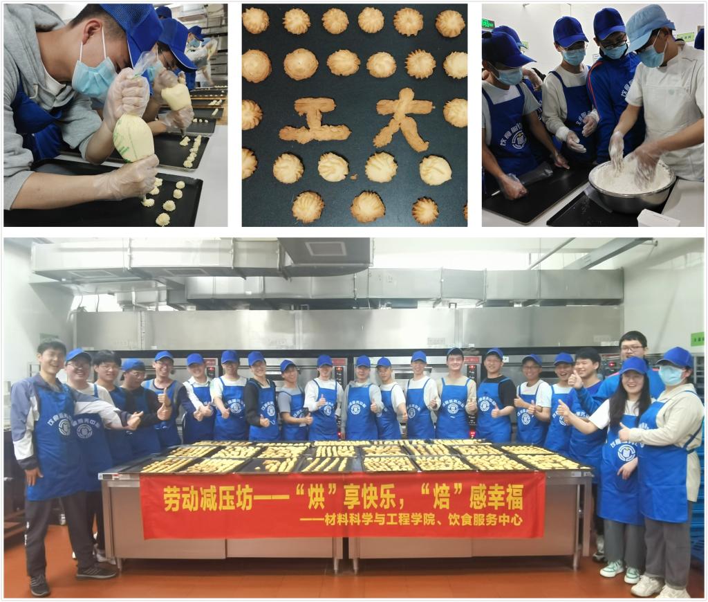 4月15日下午,开云官方官网登录入口、总务部饮食服务中心在屯溪路校区饮食新大楼404会议室、西点加工间联合开展了第一期“劳动减压坊”主题实践活动。材料成型及控制工程2020级1班20名同学参加活动。