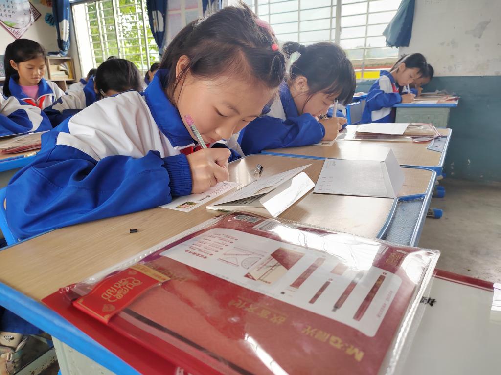 “亲爱的大姐姐,您好!很开心收到你的来信,谢谢您的礼物,我一定会努力学习,并向着合肥工业大学的方向努力。”五年级(2)班的王泽微这样说。孩子们收到信件后,主动为大山外的哥哥姐姐们写了回信。信中,长青二小的孩子们大方地介绍了自己以及自己的学校,美丽的丹寨风景,以及学习上困惑的瞬间,回信中或许会有些许错别字,或许语句不是很通顺,但书信中每一个字,每一句话,甚至每一个标点符号,都满载着孩子们的深厚情谊,他们正在用最传统质朴的方式,用最真挚温暖的文字,传递最美好的祝福和问候。
