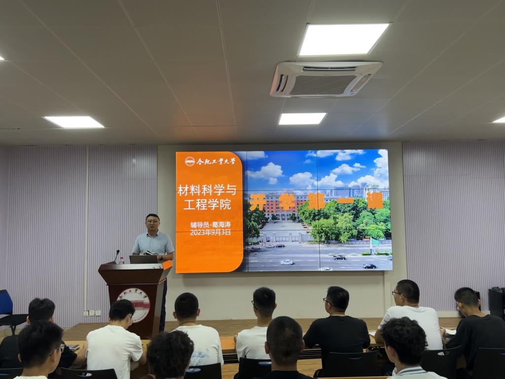 第一课以“你我相知”开启,2023级新生辅导员葛海涛首先代表材料学院全体领导教师向全体新生表示热烈欢迎。随后,向同学们介绍了自己的个人情况、工作理念,并简要介绍了工作情况。他聚焦“锻造一流材料,培养一流人才”育人理念,围绕学生、关照学生、服务学生,坚定做学生“时时放心不下”的人生导师和知心朋友。