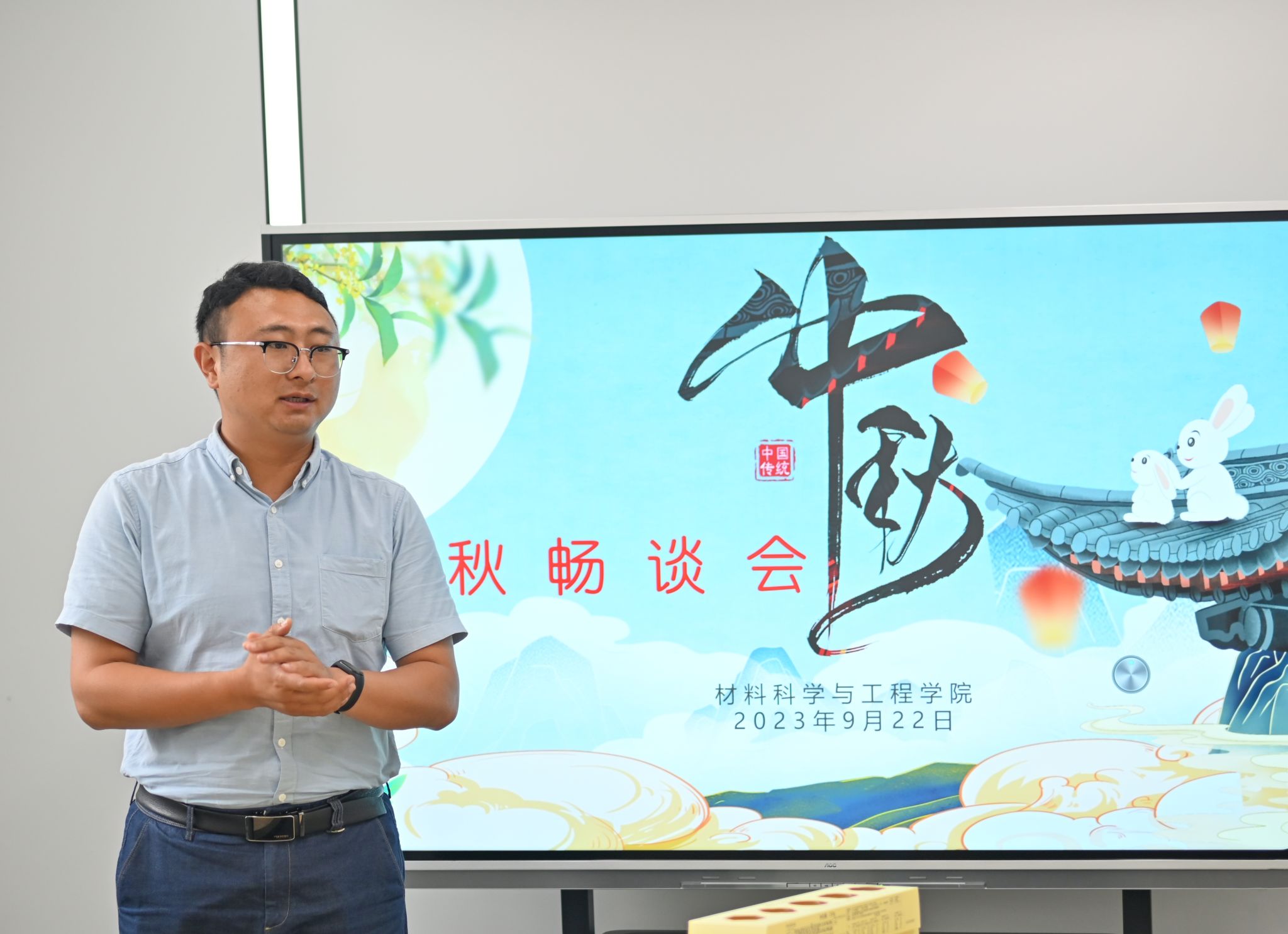 9月22日上午,材料学院于五号楼学生社区举办“情满中秋,爱在工大”中秋畅谈会,为学生分发工大专属月饼、送节日祝福,师生共话家国。材料学院2023级辅导员、学生代表参会。