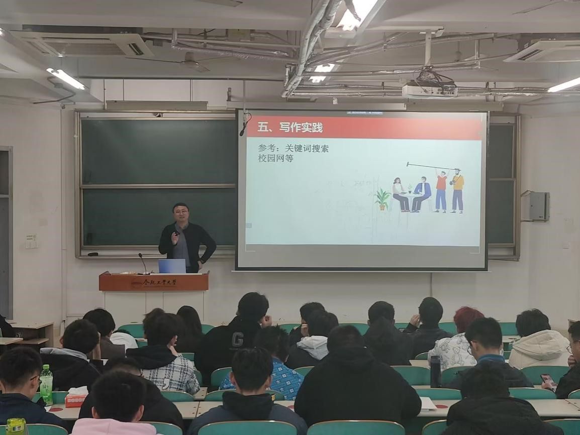 为提升学生骨干的技能水平,近日,材料学院在翠九教201举办“斛兵材子”培训班第四讲——常用文稿撰写培训。2023级辅导员葛海涛和第44届学生会轮值主席李甲庚受邀作为主讲人,50余名学生骨干参训。