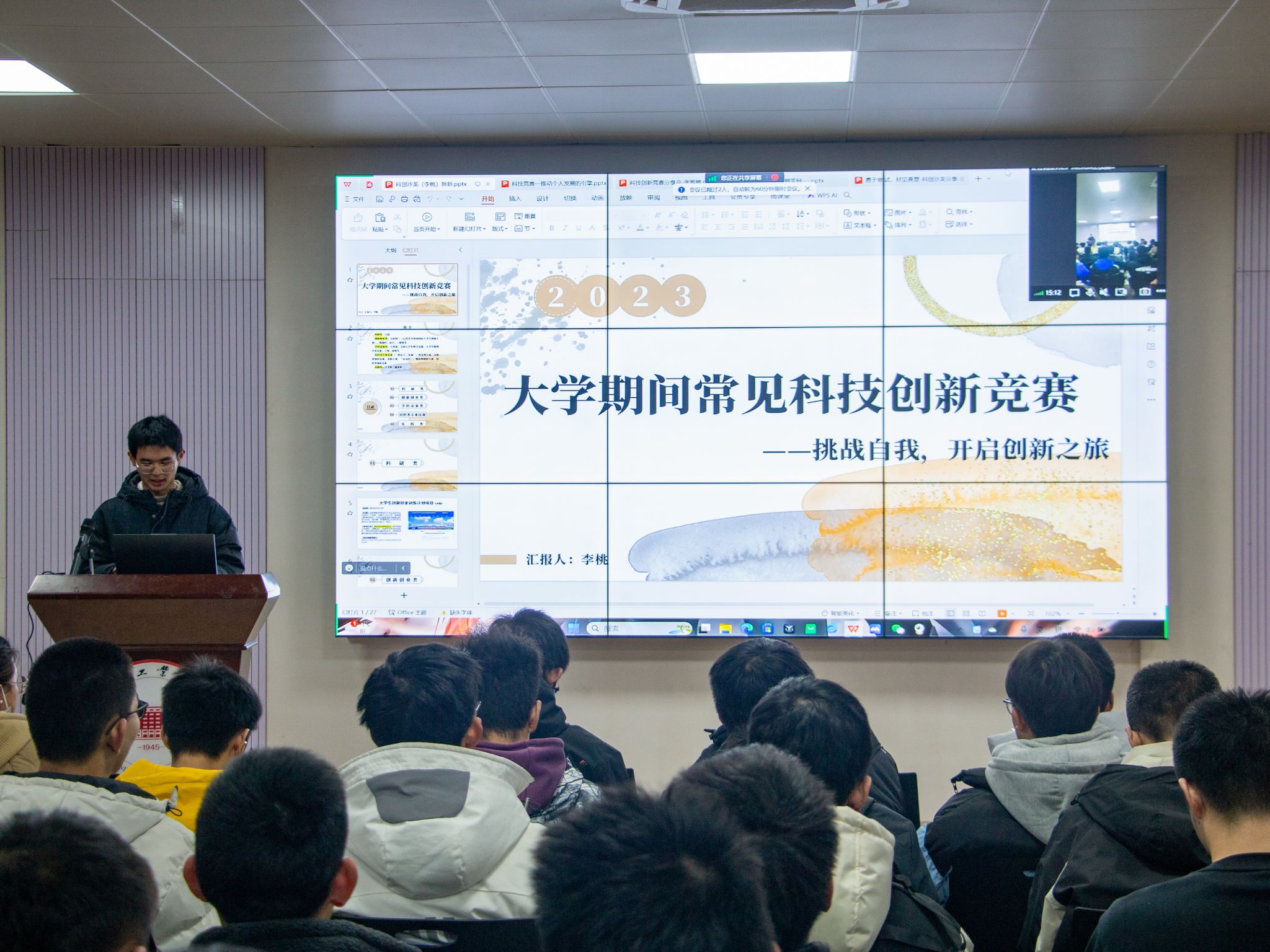 为进一步提升大学生创新创业意识,培养学生科技创新能力,12月18日晚,开云官方官网登录入口于翡翠湖校区综合楼一楼多功能报告厅举办“挑战自我,开启创新之旅——大学期间常见的科创竞赛”主题沙龙活动,学院80余人参与本次活动。