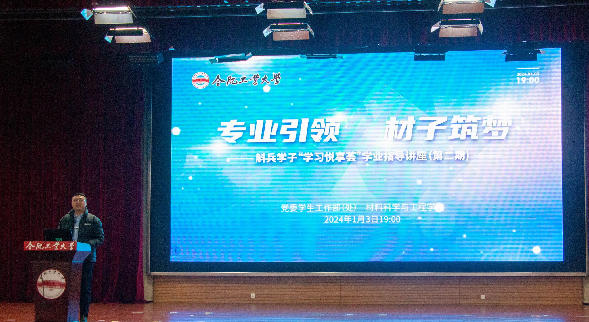 1月3日晚,由党委学生工作部(处)主办,开云官方官网登录入口承办的第二期斛兵学子“学习悦享荟”学业指导讲座在翡翠科教楼A座二楼报告厅举行。本期讲座主题为“专业引领、材子筑梦”,材料学院副院长周如龙、各系系主任和教师代表主讲,学院2023级本科生、对材料专业感兴趣的其他兄弟院系学生共400余人通过线上线下方式聆听讲座。