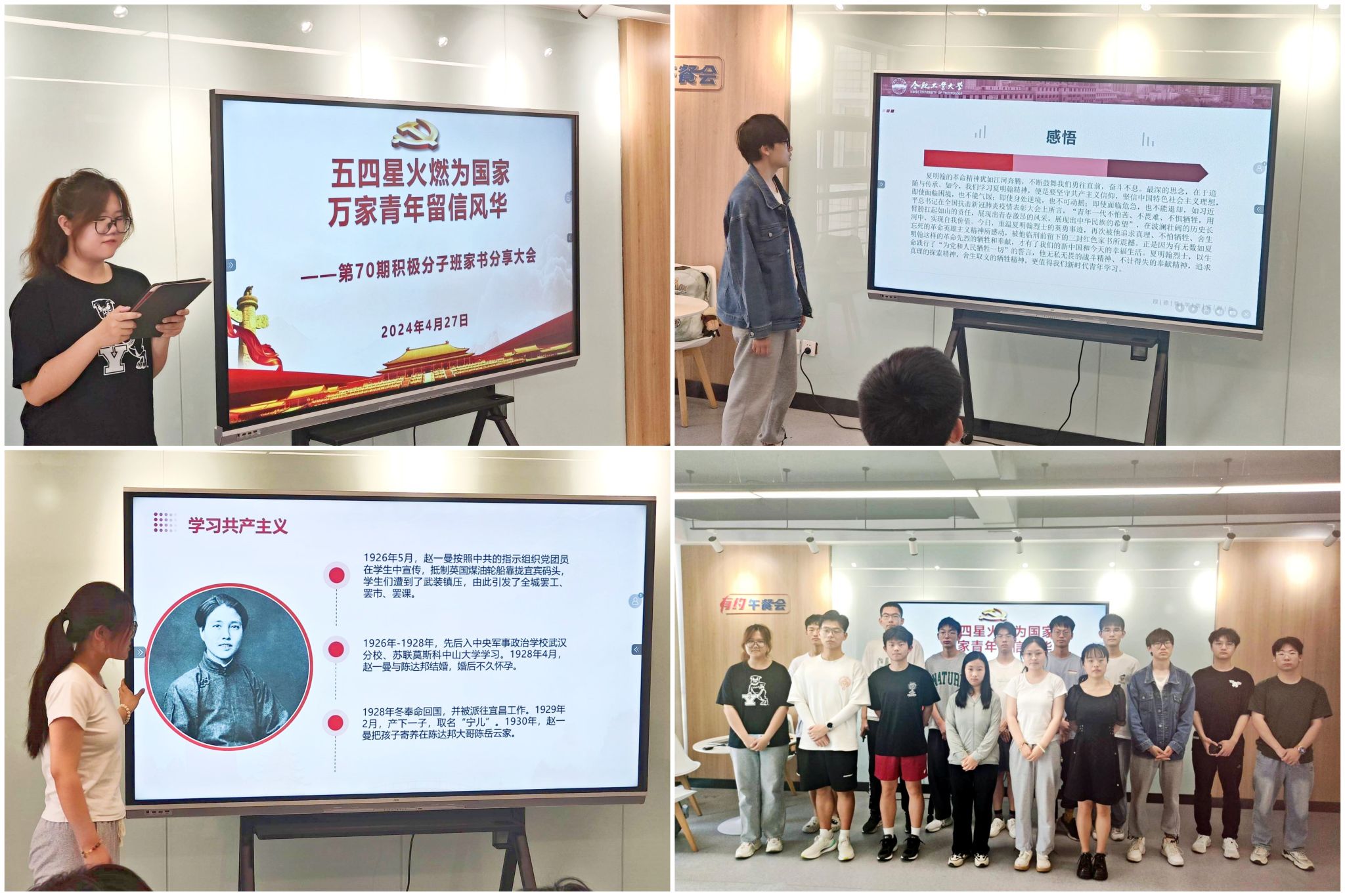 5月11日,开云官方官网登录入口在翡翠湖校区四号楼学生社区沙龙空间举办“五四星火燃为国家,万家青年留信风华”新时代青年家书诵读活动,材料学院第70期全体积极分子参加活动。