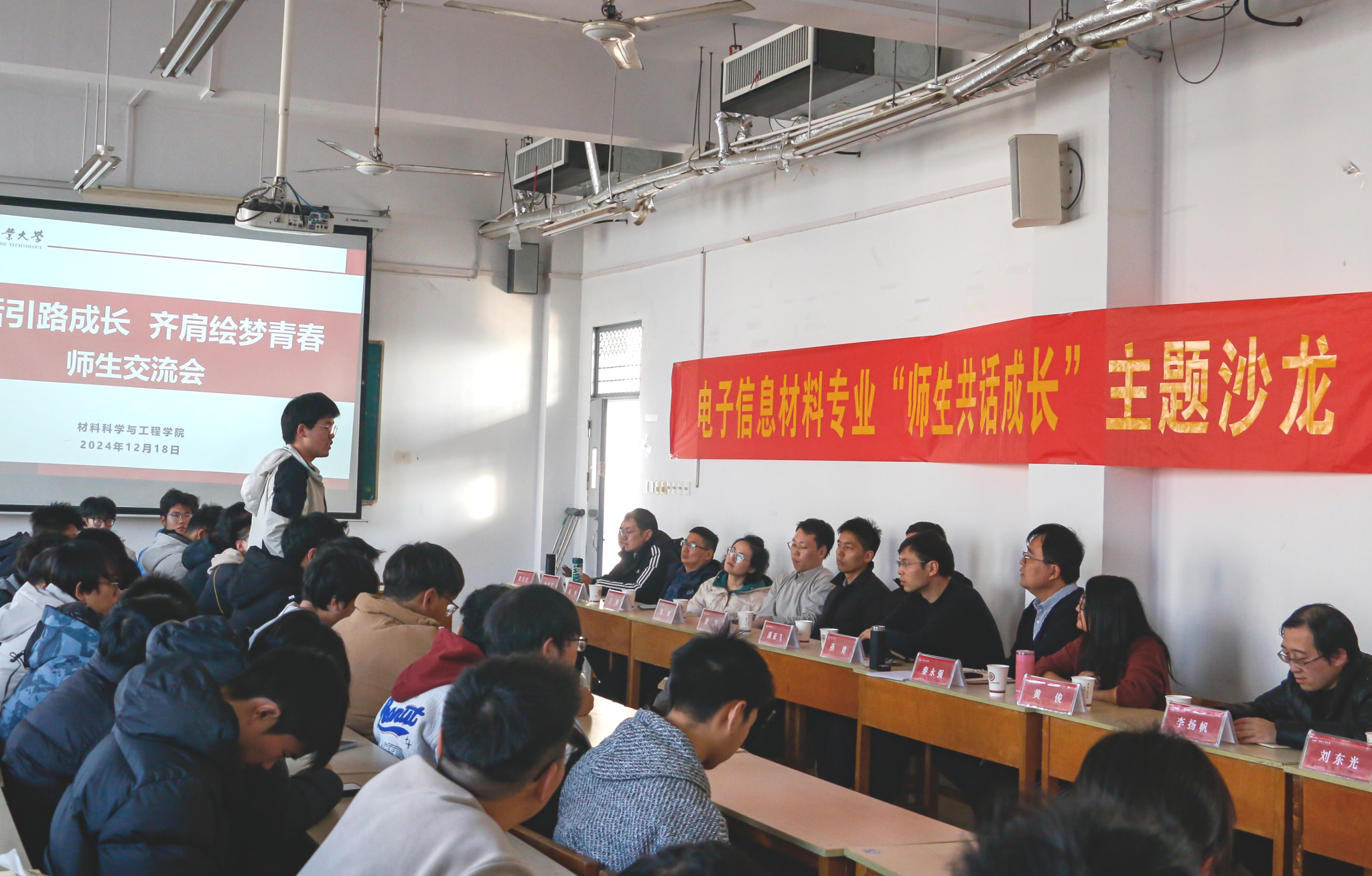12月18日下午,全国“样板支部”、材料学院本科生第二党支部在翡翠湖校区三教409举办了“师生共话成长”主题沙龙。学院安徽省“样板支部”、金属工程材料系教师党支部教师代表、学院全国“样板支部”、本科生第二党支部电子信息材料工程专业2024级全体同学100余人参加本次沙龙。