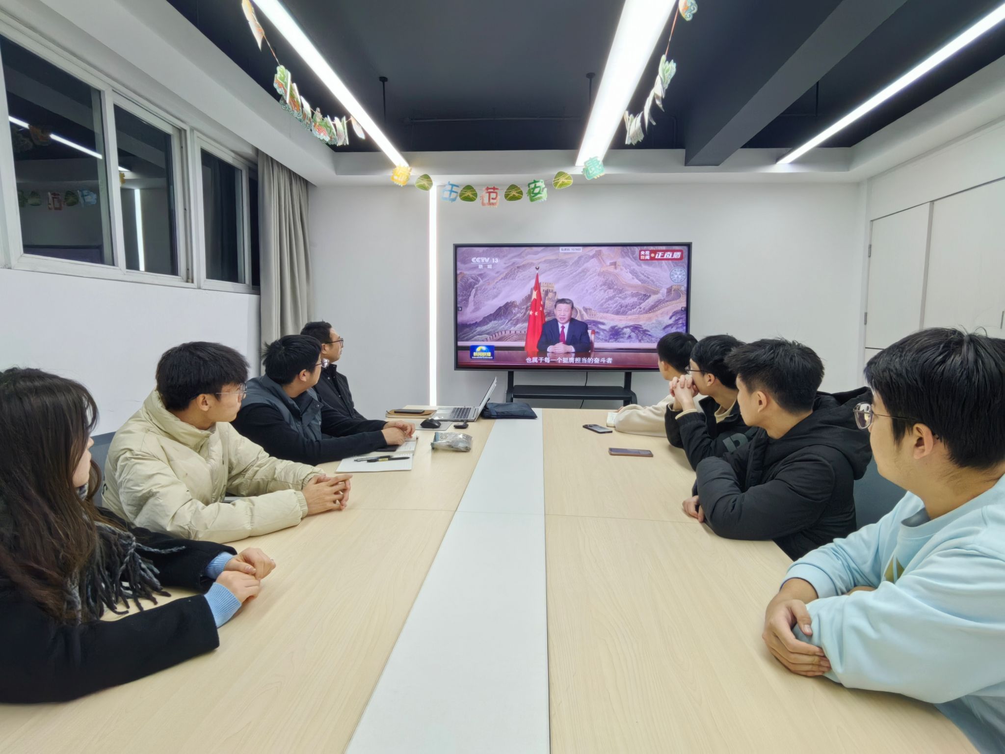12月31日晚,材料学院于四号楼学生社区会议室组织观看习近平总书记2025年《新年贺词》,学院2023级辅导员、2024年全体新发展党员和新发展团员30余人参与了本次活动。