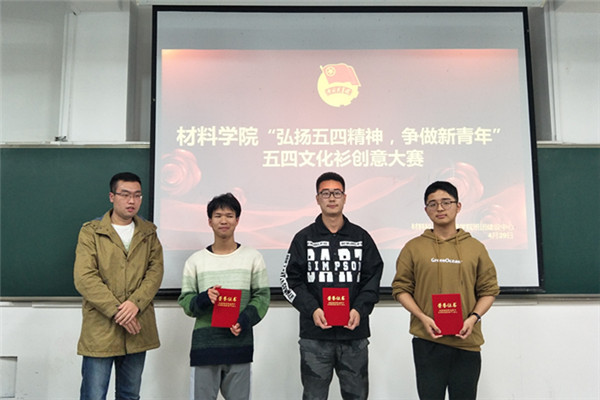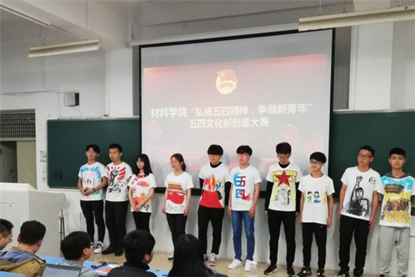 4月28日晚材料学院于翠四教109教室举办了以“弘扬五四精神,争做新青年”暨五四文化衫创意设计大赛活动。
