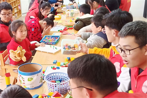 到达康复中心后,志愿者们配合工作人员摆放好桌椅和玩具,等待孩子们的到来。孩子们看到桌上的各类玩具时显得非常兴奋,孩子们就坐后,志愿者们进行了分组协作教学,有的教孩子们写字,有的教孩子们数学,有的教孩子们堆积木......志愿者们的悉心教导和耐心陪同,使得孩子们在快乐中收获知识,也让这群可爱又特殊的孩子们感受到了社会的温暖和关爱。