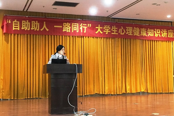 薛传妹做《大学生常见的心理问题的分类和识别》主题报告。报告中对“心理学”“心理健康”“大学生心理健康的标准”进行了阐述,针对大学新生常见的人际交往、学习问题、自我认知、恋爱问题、网络成瘾、群居适应等心理障碍进行了案例描述,并提出相应的建议,最后,针对大学生常见的心理疾病进行了知识普及,从“自助助人”角度出发,从认知、情绪、行为三方面引导朋辈心理工作者,做好自我危机预防,做好他人危机识别。