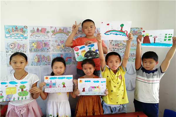 队员们给留守儿童设计了“房树人”心理绘画课、“一封家书”撰写课、“‘艺’起成长”艺术课等特色课程,通过 “房树人”心理绘画了解孩子们的心理健康状况,以“一封家书”来缓解孩子们对父母的思念,“‘艺’起成长”艺术课让孩子们感受艺术带来的快乐,意外的小礼物打动了所有的小朋友,他们欢呼着冲向了队员们的怀抱,一瞬间“一抢而空”。