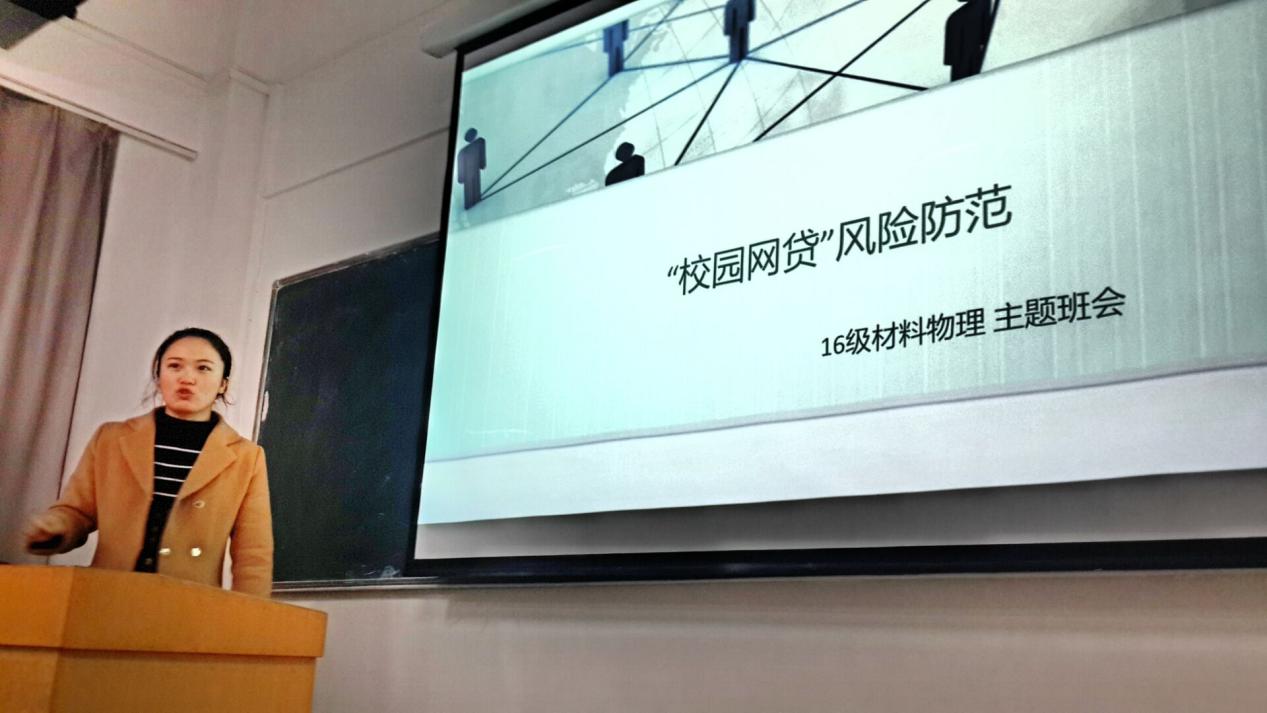 为加强学生对网络贷款的认识,辨识网络诈骗的陷阱,树立科学、理性的消费观,材料学院2016级材料物理专业于12月9日晚在翠八教303召开了“‘校园网贷’风险防范”主题班会。此次班会由16级辅导员左旭主持。