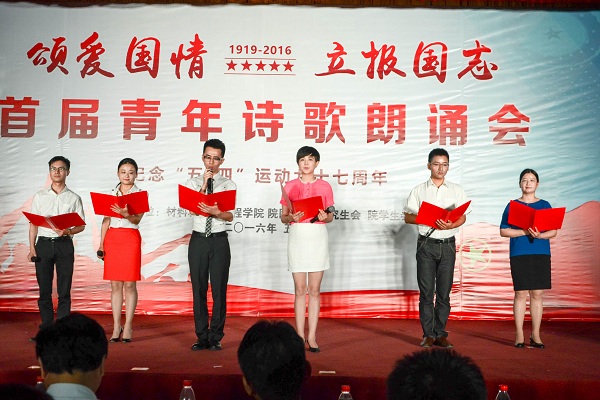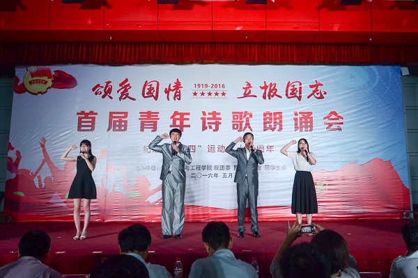 为纪念五四运动97周年,深入学习贯彻习近平总书记关于青年成长成才的重要论述,5月30日晚,由学工部和开云官方官网登录入口团委主办的“颂爱国情、立报国志”首届青年诗歌朗诵会在东风报告厅举行。
