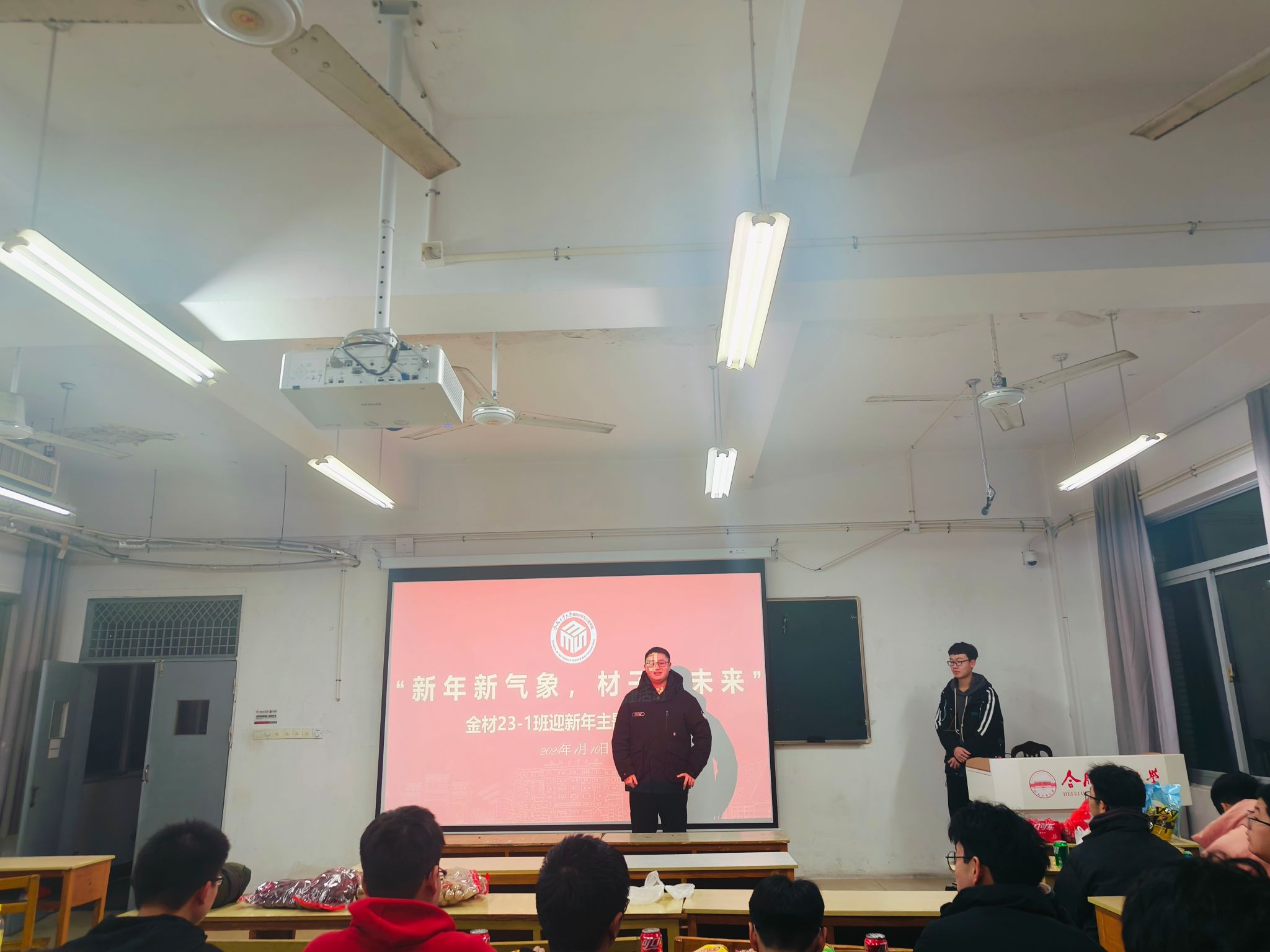 为庆贺新年到来,巩固班级团结,缓解期末压力,1月10日晚,材料学院组织金属材料工程23-1班于翠七教302举办了主题为“新年新气象,材子向未来”迎新年主题团建活动,金属材料工程23-1班40名同学及班主任谢思瑶参与本次活动。