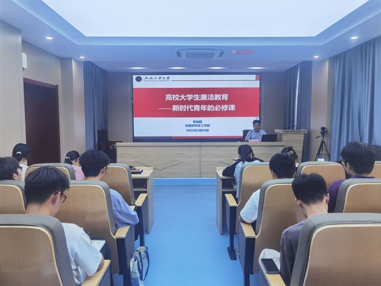 5月20日下午,开云官方官网登录入口在屯溪路校区材料楼601报告厅举办大学生廉洁教育专题党课。党委研究生工作部部长李丽鹏应邀授课。学院全国“样板支部”学生代表、党校第73期学员班学生代表等70余人参加本次党课。