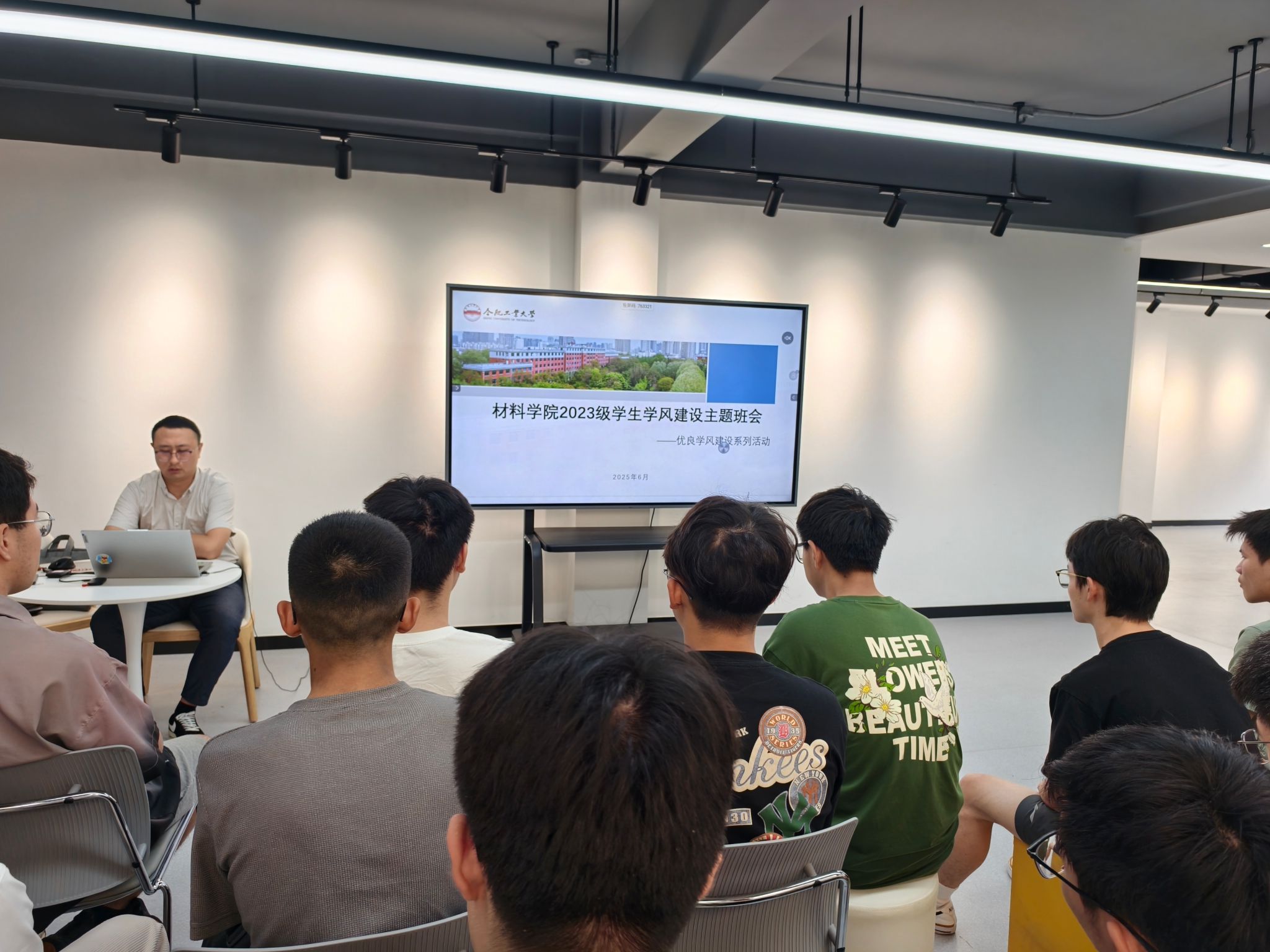 6月7日下午,材料学院于翡翠湖校区四号楼学生社区沙龙空间召开2023级学风建设主题班会。学院相关负责人、材料物理专业23级全体同学参加本次班会。