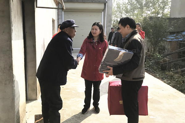 学院一行首先前往黄湾镇砂坝村党群服务中心,详细了解结对帮扶的6户贫困户的近况。随后,在我校挂职干部朱泉清和村委会负责人的陪同下,扶贫队伍分组入户,为高龄和特困老人,送去“爱心棉被”,关心他们的身体状况和生活情况,为贫困学生送上“爱心书包”和学习用品,鼓励孩子们努力学习、树立理想。